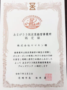 あまがさき脱炭素経営事業所に認定していただきました!